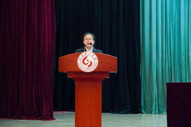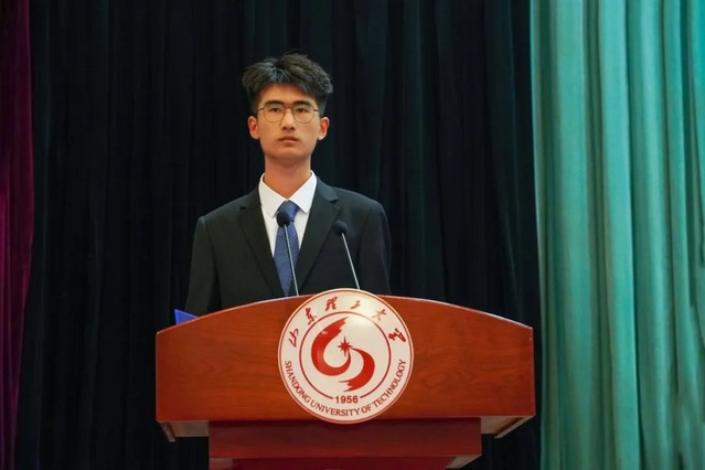 在校生代表食品1901班张天奇从专业学习、社会实践、科技创新、志愿服务等方面分享自己的成长经历,并勉励学弟学妹们:明确目标,做勤学奋发的孤勇者;躬行实践,做开拓创新的追梦人;勇于担当,做锐意进取的实干家。