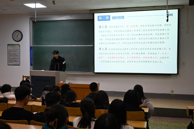 培训部负责人重点分享了与公司专业对口及员工参与度高的“互联网+”、“挑战杯”等赛事的总体情况以及员工应具备的基本技能,并结合获奖赛事,从项目申报、作品打磨到参赛评比等过程进行了全面交流分享。最后通过问答环节,对新生提出的问题进行逐一解答,鼓励同学们积极参与科创类竞赛。