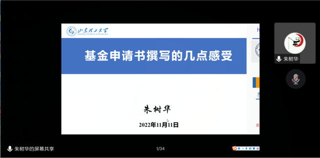 孙霞对朱树华教授、王硕教授表示热烈欢迎,向参会者介绍了两位学者的学术成就。朱树华教授结合自身的基金申报经验全方位的讲解了国家自然科学基金申报全过程的注意事项。他指出,基金申报功夫要放在平时,时刻准备;申报书要严格按照基金委的规定来准备,不断打磨;研究方向要具有持续性,不要盲目追求热点,新参加工作的博士开展的研究方向要与导师有所区别;尽量多参加国内外学术会议,增强学术影响力。王硕教授则从识别体系、信号体系、检测平台等方面详细介绍了新型纳米材料及功能抗体在食品快速检测分析技术的应用;并就立项依据、选题构思等方面对国家基金申请书的撰写提出了自己的见解。