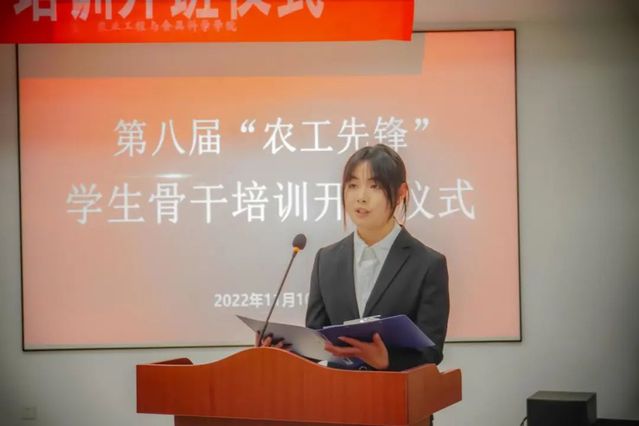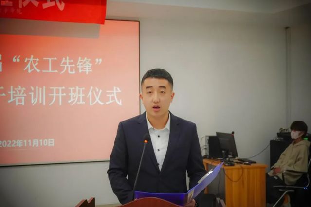 为加强员工干部队伍建设,明确员工干部的职责和要求,全面提升公司员工组织和员工干部的思想政治素养、岗位认知深度和实际工作能力。11月10日,公司于6号实验楼1104会议室举行第八届“农工先锋”员工骨干培训班开班仪式。公司党委副书记戴洁、团委书记张佳、辅导员马俊俊出席本次开班仪式,会议由张佳主持,2022级全体员工干部参加。