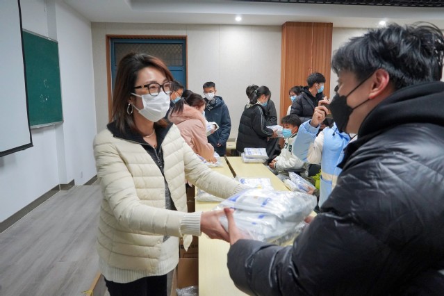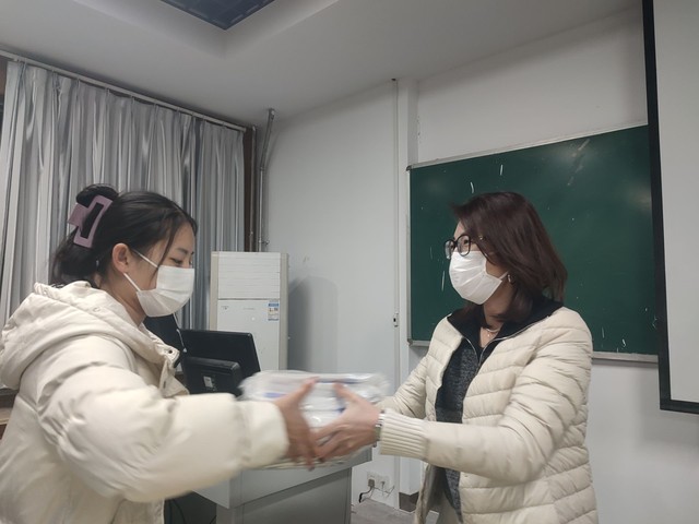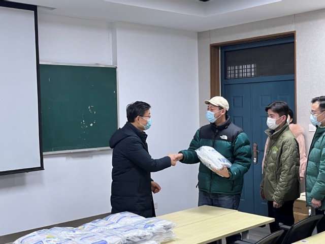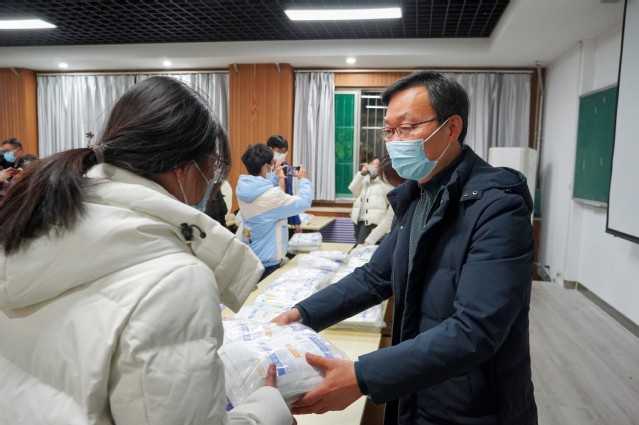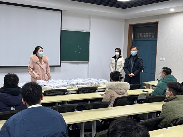抗击疫情不松懈,浓浓关怀暖人心。11月29日,公司党委书记杨直、党委副书记戴洁来到12号教学楼111教室,为全体在校员工发放由农工党淄博市市直二支部爱心捐赠的20000只口罩。