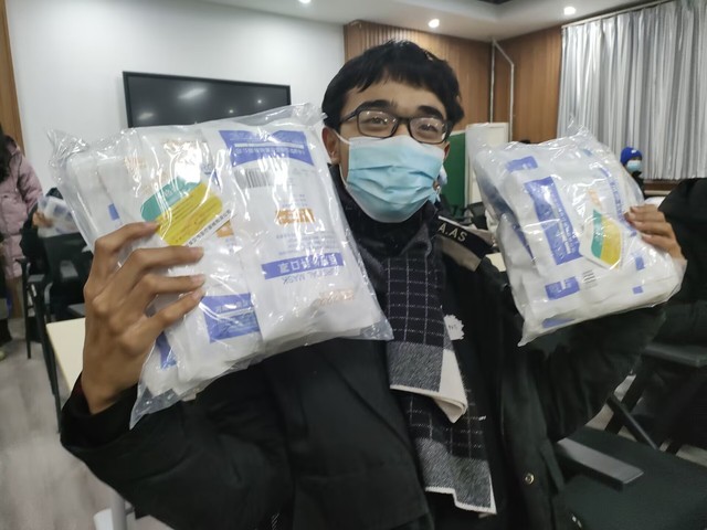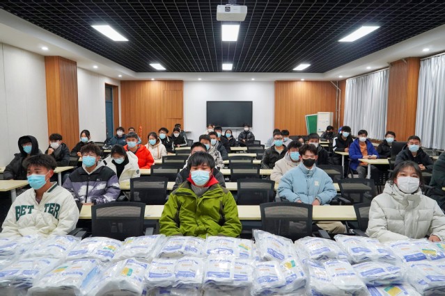口罩发放现场,各班级负责人排队领取,秩序井然。杨直询问员工在校的困难和诉求,叮嘱大家做好防护,将公司的关心关怀传达给在校的每一名员工。收到口罩后,员工们纷纷表示,大家收到的不仅是口罩,更是一份“安全感”,一份来自公司的关爱和捐赠方的关怀,他们将心怀感恩,严格遵守公司疫情防控各项规定,为防控疫情、守护健康贡献自己的力量。