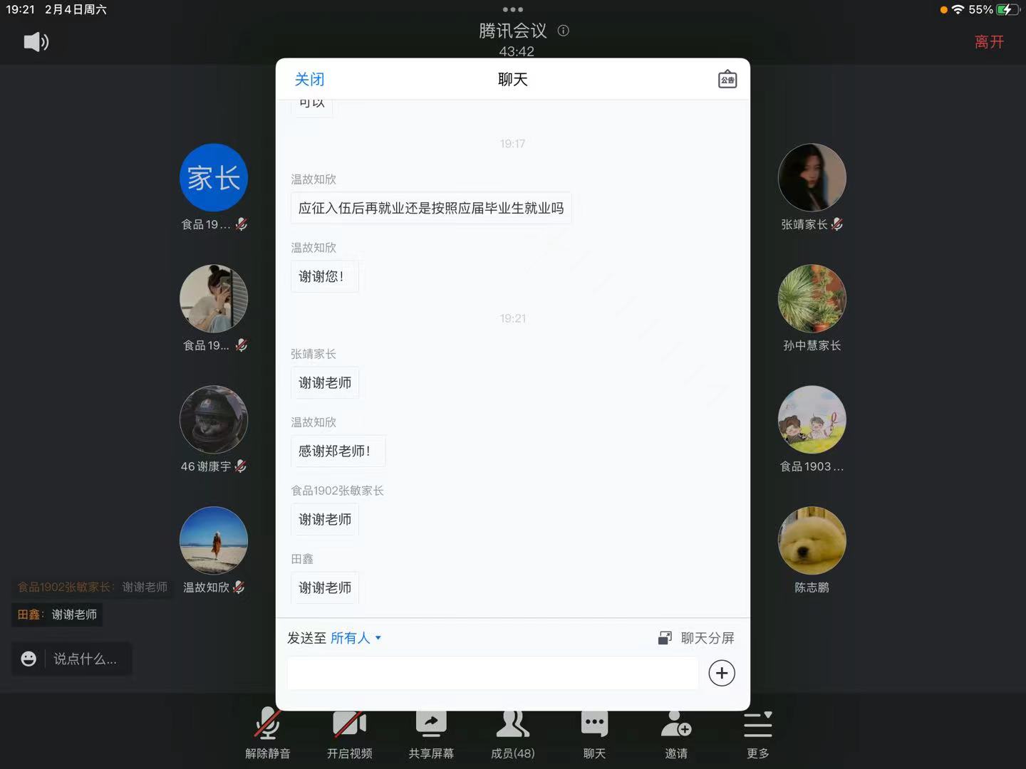最后,辅导员针对家长和员工提出的就业问题进行详细解答,同时希望家长能够加强与员工的沟通交流,帮助员工摆正就业心态,主动适应就业新形势,树立先就业再择业的就业观,实现更加充分更高质量就业;希望能够充分发挥家校协同作用,家校齐心共助员工成长发展。