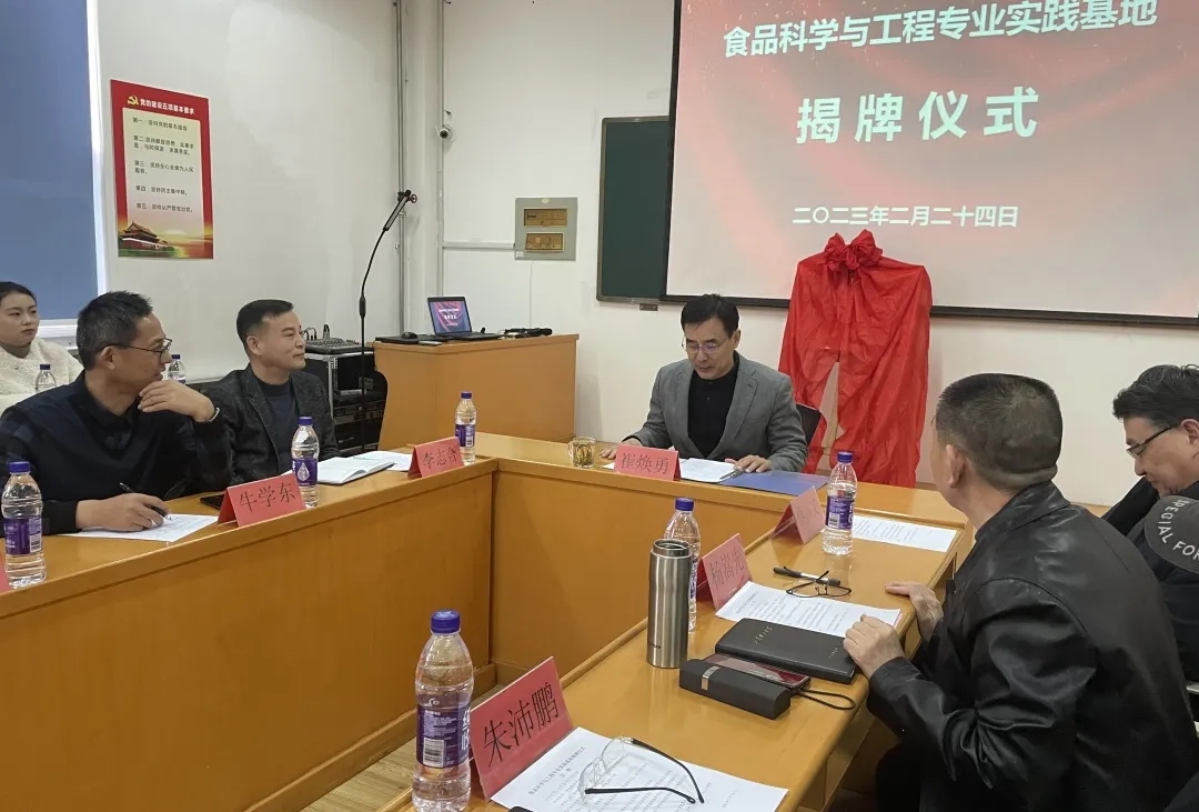 2月24日下午,公司谈球吧官方网站食品科学与工程专业实践基地揭牌仪式在饮食服务中心培训室举行。公司党委常委、副董事长崔焕勇出席,教务处、谈球吧官方网站、后勤管理处负责人,谈球吧官方网站师生代表及饮食服务中心实践课程带教团队代表参加活动。