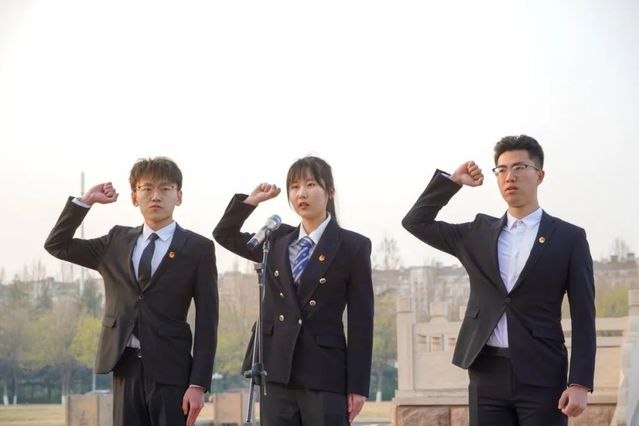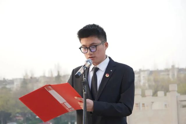 青年员工代表李子强、陈佳慧、张敬卓带领全体员工重温入团誓词,在国旗下庄严宣誓。