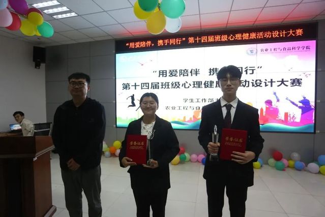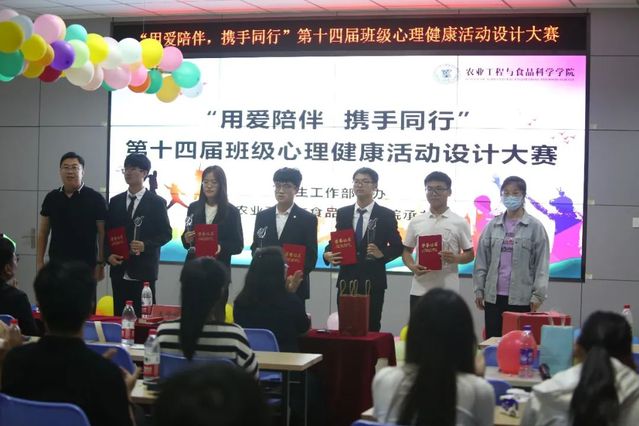 参赛班级通过PPT讲解的形式向大家汇报了班级心理健康活动开展的情况与效果,并用视频展示了活动的精彩瞬间。踏上“Zn”征程,创“Mn-Li”明天队他们的口号是“青春无畏,逐梦扬威;携手同行,共创佳绩”, 他们从全国各地汇聚于此,从陌生到熟悉,相互鼓励,共同进步;他们以年华为笔,锐意进取,书写灿烂青春;分别通过你比我猜、心有千千结、欢乐撕名牌三个活动,帮助同学们释放压力,保持乐观向上的情绪,让班级的凝聚力逐步提升。爱心丙乙甲队以“星光指引前行 绽放奉献之花”为主题,通过爱的抱抱、自助加油站等一系列活动,诠释了互相陪伴的温暖与感动,引导同学们对未来充满信心和希望,更加积极乐观地面对生活。此外,“向阳而生、逐光前行”队等其他8支参赛队伍分别展示出各自团队活动的风采。比赛过程中,同学们认真观看,答辩同学准备充分,体现出各班级阳光、健康、团结、向上的心态,用自己的行动诠释了“用爱陪伴”的真正含义,展现了班级心理健康活动背后的温暖故事,出色的表现赢得了评委老师和观众们的阵阵掌声。最终,比赛共选出一等奖两名、二等奖三名和三等奖五名。评委老师为获奖班级颁发证书,并合影留念。