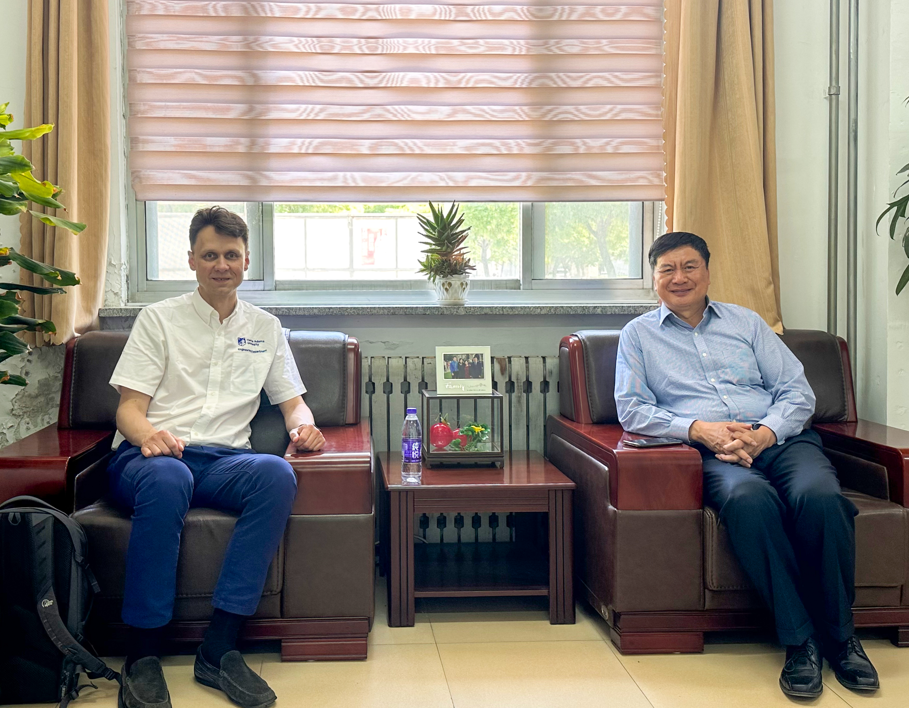 5月22日上午,公司兰玉彬经理热情接待了英国哈珀亚当斯大学斯文·皮茨教授,并与他进行了一次富有成果的会 谈。会谈开始时,兰经理对斯文教授的到访表示欢迎,兰经理与斯文教授回顾了自2017年以来两校在人才培养、国际合作平台和科研方面的合作等情况,特别是本科生和研究生及教师去哈珀亚当斯大学学习交流情况等。兰经理与斯文教授就双方的研究领域展开了深入交流,并分享了在智慧农业发展方面的经验和成果。双方就当前农业面临的挑战、智能农机技术的应用以及农业机器人的未来发展趋势进行了讨论。斯文教授对兰经理的热情接待表示感谢,并对公司在农业工程和智慧农业领域的发展成就表示赞赏。他详细介绍了哈珀亚当斯大学在小型农业机器人技术和无人农场方面的研究成果,并分享了一些成功的案例和实践经验。斯文教授强调了合作和交流的重要性,希望通过双方的合作,共同推动智慧农业领域的创新,为全球农业发展作出更大贡献。兰玉彬经理表示,期待未来进一步加强双方的合作关系。这次会谈不仅加深了双方的了解和友谊,也为接下来的学术交流活动奠定了良好的基础。