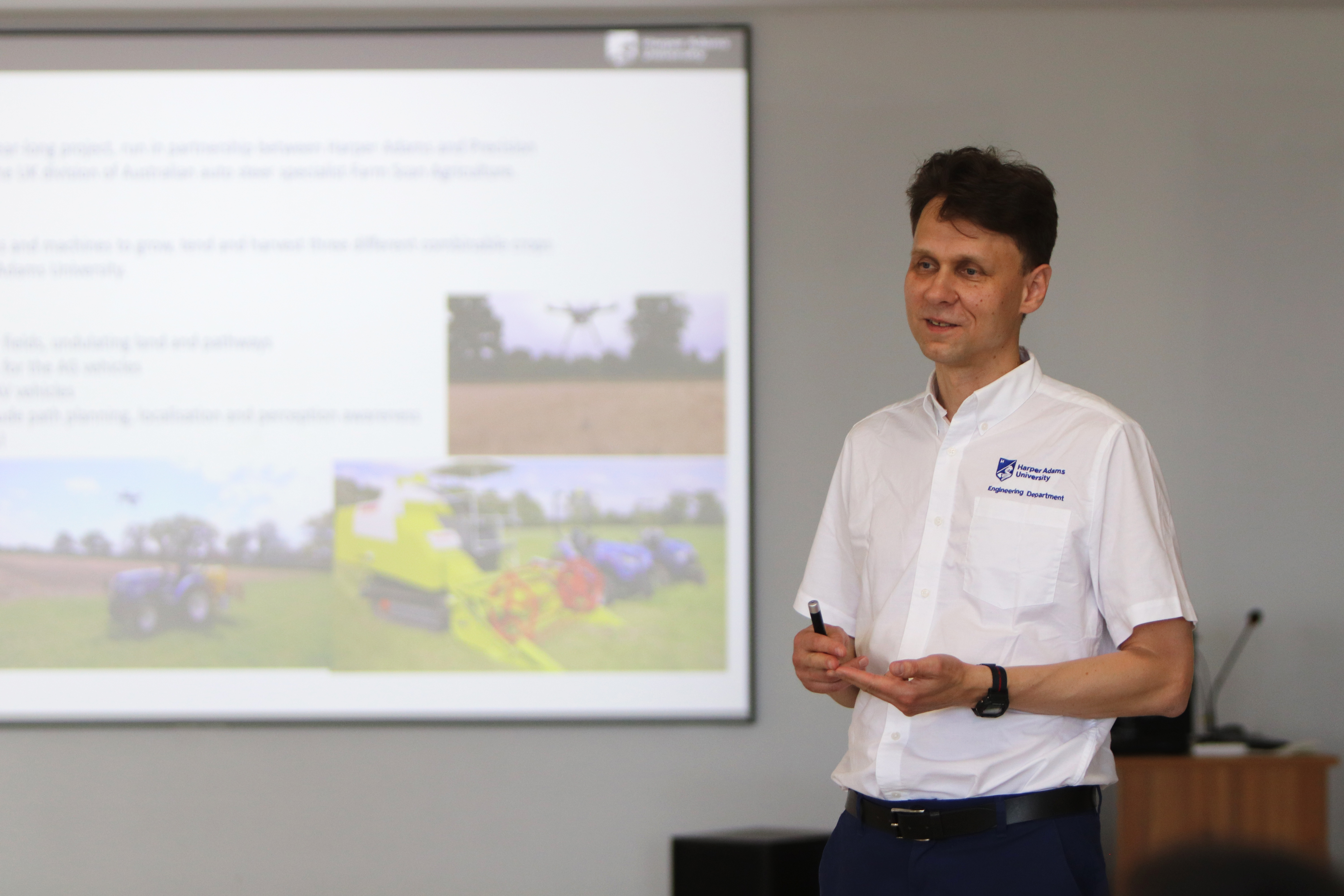 22日上午,斯文教授在6号农业工程大楼1109报告厅做了题为“How robots are redefining te future of farming”的学术报告,就英国哈珀亚当斯大学所倡导的小型农业机器人技术、无人农场(Hands-Free Farm)等进行了分享,讲解了农业发展面临的挑战、智慧农业的现状及发展趋势。在交流环节,与会师生与斯文教授进行了深入互动,斯文教授以他丰富的经验和专业知识对这些问题进行了解答,并分享了他在相关研究领域的见解和观点。