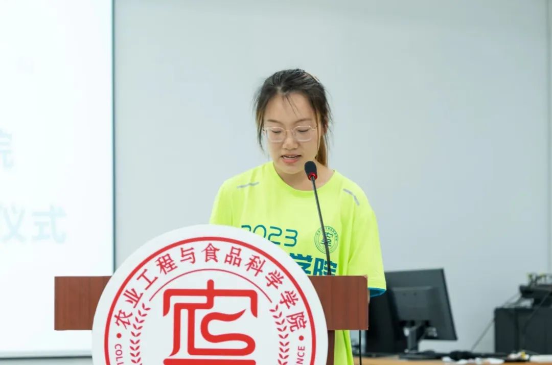 “乡村振兴走基层,青春聚力正当时”实践团队长翟艺飞作为员工代表发言,她代表即将出征的同学们向校团委、公司团委对社会实践的支持表示感谢,并做出承诺:坚持用脚步丈量祖国大地,坚持用行动彰显担当使命,在社会实践活动中争当卓越山理工人。