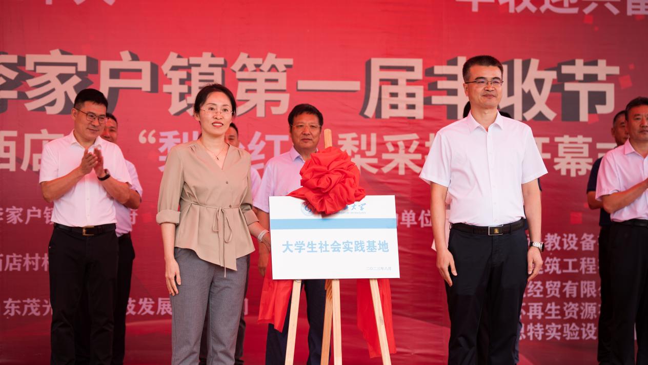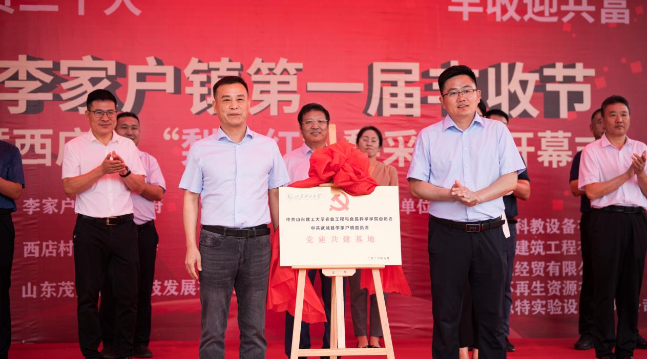8月26日上午,李家户镇第一届丰收节暨西店村“梨公红梨”采摘节在山东省德州市武城县李家户镇西店村顺利举办,为进一步提高党组织的凝聚力和战斗力,持续推动党建+高校联动机制顺利开展,加强校镇技术与人才合作,实现资源共享、互利共赢,李家户镇党委联合谈球吧共同打造党建共建基地和谈球吧老员工社会实践基地,举行揭牌仪式。