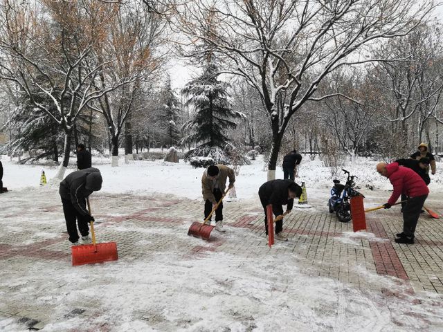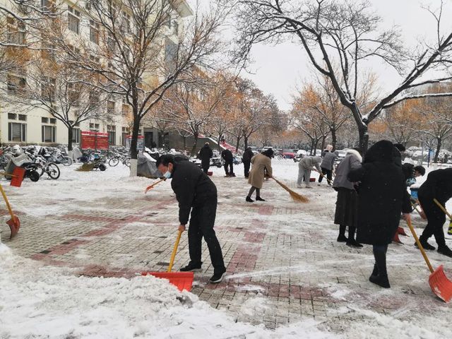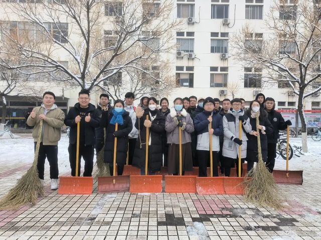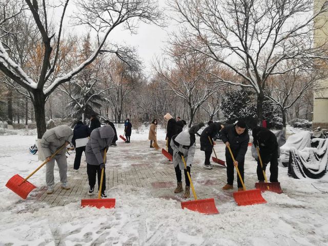 受冷空气影响,淄博市大降温,狂风裹挟着细雪,横扫山理工的校园。“不知庭霰今朝落,疑是林花昨夜开。”同学们欣赏雪景的同时也纷纷表示在结冰的路面上学会了“滑铲”,道路积雪积冰对师生的出行带来了诸多不便。12月15日,公司领导班子成员、部分行政人员及员工会、党团服务中心员工志愿者积极投入到扫雪除冰工作,保障师生出行安全和教学工作正常运行。
