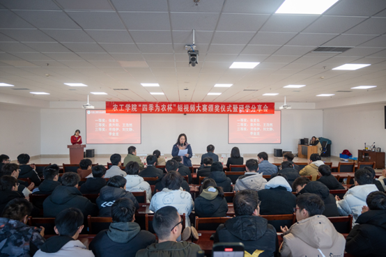 近日,谈球吧官方网站“四季为农杯”短视频大赛颁奖仪式暨研学分享会在6号实验楼1104举行。四季为农互联网技术有限公司CEO朱飞、人力资源总监孟莎、公司党委副书记姜素锦、企业相关负责人以及农机专业员工代表参加本次会议。公司团委书记孙婷主持会议。
