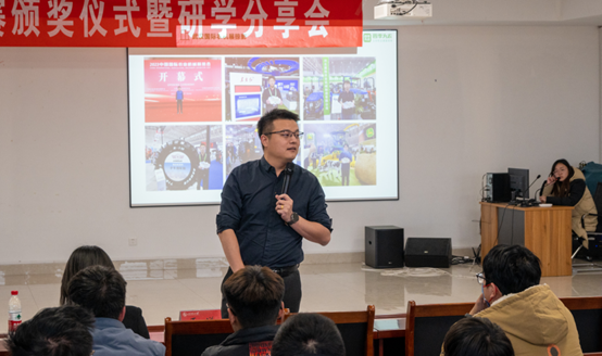 朱飞围绕农机行业现状、发展趋势和农机员工职业规划等内容展开讲述,并以2023武汉国际农机展和2023德国汉诺威国际农机展为例,用生动有趣的语言为同学们描述观展的经历和令人震惊的最新农机产品,引起同学阵阵掌声。他鼓励同学们坚定农机专业自信,掌握扎实的专业基础,为农机机械化和智能化贡献力量。