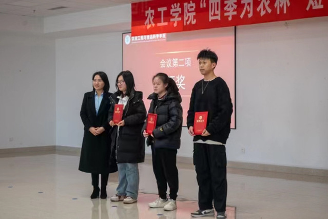 姜素锦宣读“四季为农杯”短视频大赛获奖名单,与会嘉宾们为获奖同学颁发荣誉证书。