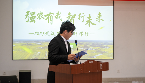 杨浩然、李庆钊、余启运和李荣昊四位同学以“智慧农业、强农有我”为主题,分享了参加武汉国际农机展研学实践的所学、所思和所悟,用PPT和视频的形式展现公司学子求真务实、奋发向上的精神风貌。