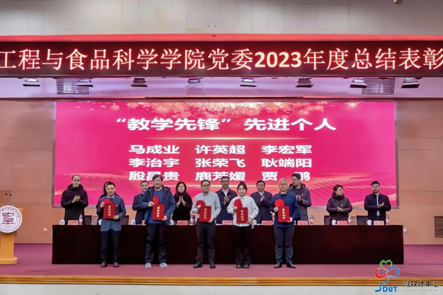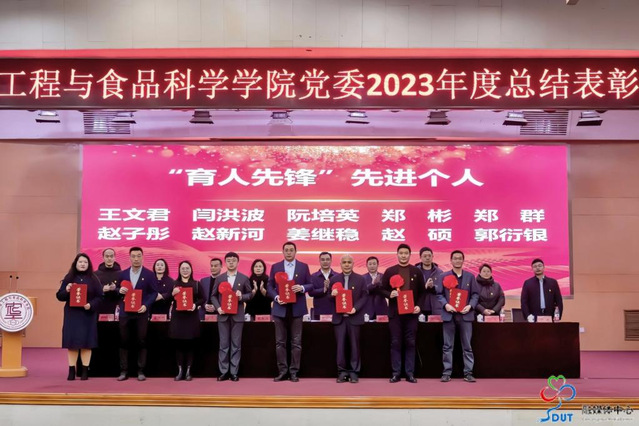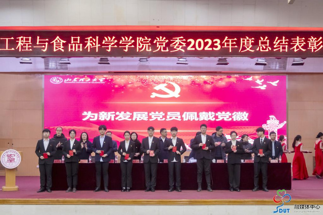 与会领导为受到表彰的集体和个人颁奖;为新党员佩戴党徽、发放《党章》,全体党员共温入党誓词。食品系教工党支部支部书记汪陈洁、员工第三党支部宣传委员田美佳代表获奖者作了发言。
