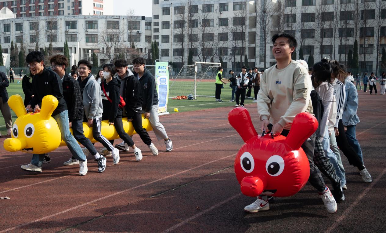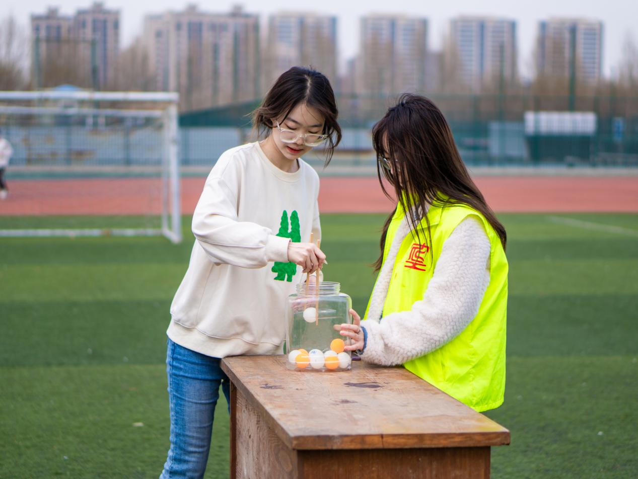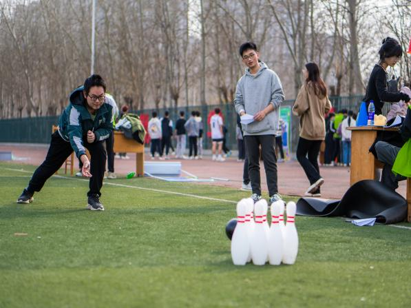 本次体育文化节开幕式共设有13个趣味活动项目,既有考验团队合作的“珠行万里”“四人踢毽子”“8 字跳绳”,也有展示技巧与力量的“超级保龄球”,更有“放飞梦想”“六人五足”“飞镖大师”等活动返场,为同学们带来更多精彩体验。