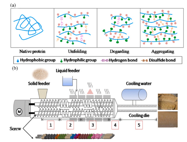 该论文属于蛋白质组织化研究领域。随着未来几十年世界人口增长及富裕水平的提高,需要大量的蛋白质食品以满足生产和生活的需要。然而,动物蛋白即肉制品不断出现的伦理问题,生产加工过程中的土地资源、水资源消耗及碳基温室气体排放等环境问题逐渐显现并呈爆发态势。与此同时,消费者很难改变饮食习惯从而减少对肉制品的消费。寻找肉类替代品成为一个新思路。因此,利用植物蛋白资源生产高蛋白仿肉制品的研究引起了人们的广泛关注。豌豆蛋白营养价值较高,氨基酸组成比例均衡,具有较低的致敏性也不会带来转基因问题,被认为是一种优质的植物蛋白来源,正越来越受消费者和食品加工者的青睐。 向植物蛋白原料中加入添加剂可改变蛋白质分子间和分子内的作用力,从而影响挤出物产品的外观及理化特性。乳化剂可改善挤出物的外观,L-半胱氨酸作为一种还原剂,可将二硫键还原成疏基。盐类如三聚磷酸盐可与蛋白质中的离子键相互作用从而改善组织化蛋白的品质。因此,该研究向豌豆蛋白中加入卡拉胶(乳化剂、增稠剂)、海藻酸钠(增稠剂)、L-半胱氨酸(还原剂)和复合磷酸盐(水分保持剂、稳定剂)等添加剂以改善挤出物的理化特性,通过测定巯基、二硫键含量、蛋白质消化率并结合红外光谱、微观结构、热特性等手段表征添加剂对组织化蛋白产品纤维结构影响的机理。为豌豆蛋白的开发及利用,改善组织化豌豆蛋白的品质提供一定的理论依据,为拓宽组织化豌豆蛋白在肉类制品的应用范围提供参考。