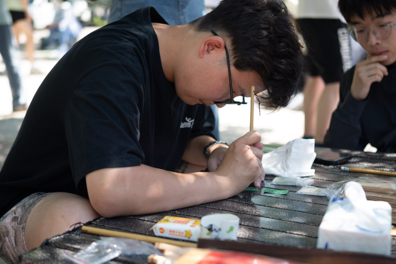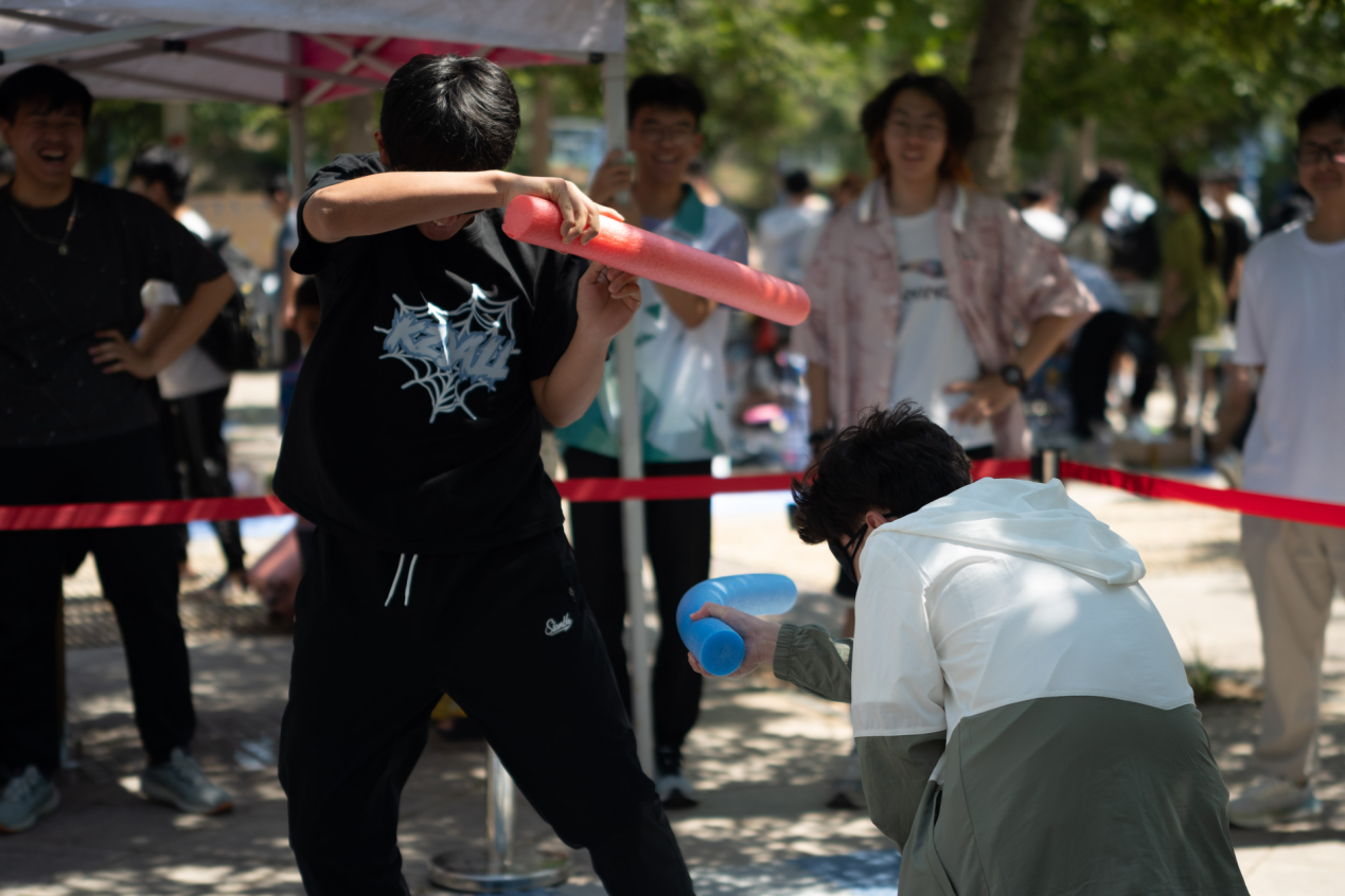 现场准备了许多有趣的游戏,带动了整个会场的氛围,为活动增光添彩,公司开展了蒙眼打人趣味活动,活动准备了丰厚的礼品,员工可通过参与游戏据获得抽奖机会。活动现场,同学们戴上眼罩开始挥舞手里的泡沫棒,周围的同学则充当指引者,在旁出谋划策。参赛选手凭借着声音和感觉去判断对手的位置并发起“攻击”,这不仅考验了他们的听力和反应能力,更带来了无尽的欢乐和笑声。旁观的同学们也纷纷为场上的选手加油助威,气氛十分热烈。