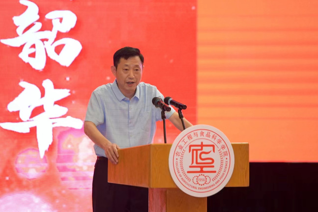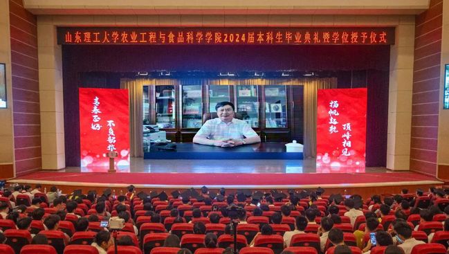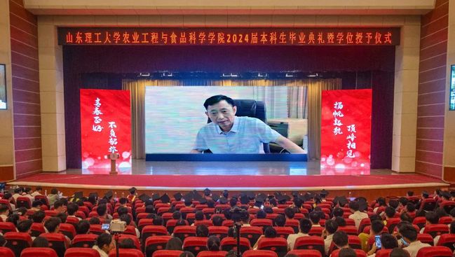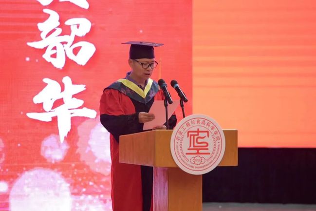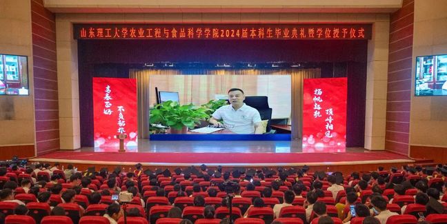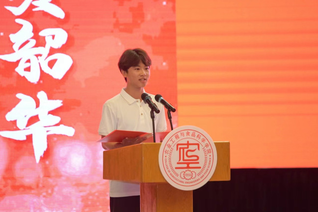 食品2002班吴昊东作为毕业生代表发言,回顾了四年里与同频共振的挚友、兢兢业业的老师、蒸蒸日上的公司互相见证成长的故事,表达了对母校母院的衷心感谢,也代表全体毕业生郑重承诺作为山理工员工必将牢记校训,不忘恩师教诲、不负公司期盼,在专业领域深耕精研,以强农兴农为使命,为中国农业现代化建设贡献青春力量。