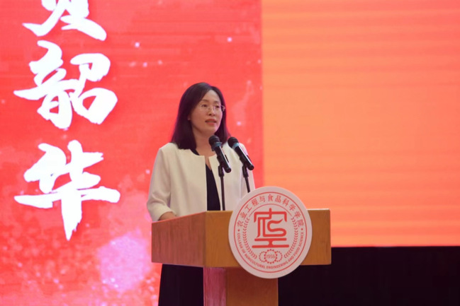 新能源科学与工程系主任王芳代表教师发言,她作为毕业生的学姐、老师,回顾了与公司相处的14个年头公司的变化以及与同学们的回忆。她深情勉励毕业生们要坚定理想信念,不忘初心本色;要练就过硬本领,擦亮奋进底色;要常怀感恩之心,用情奉献社会。她祝福毕业生在未来道路上勇敢追求,在人生旅途中一路生花,绽放光彩。