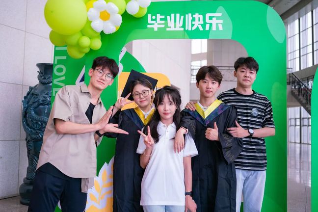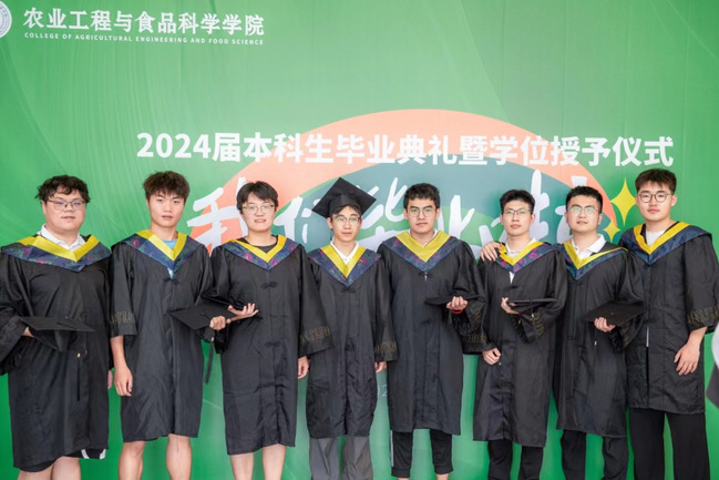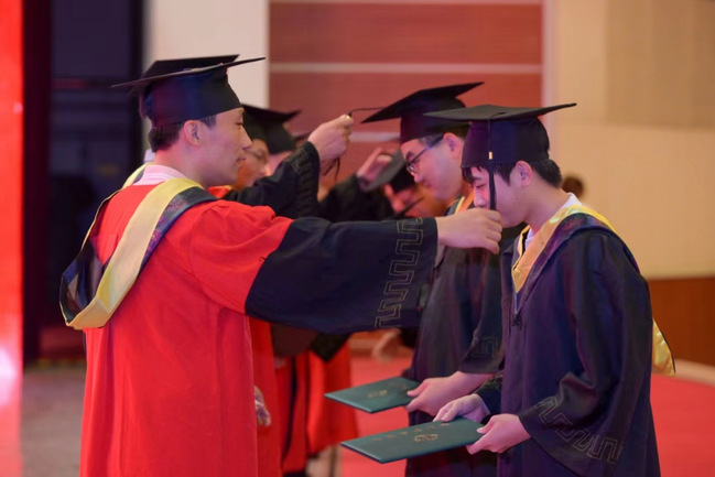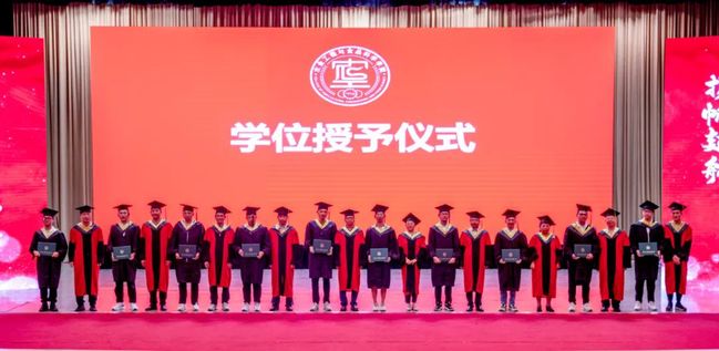 公司学位评定分委会委员和教师代表为2024届本科毕业生授予学位,拨穗并合影留念。