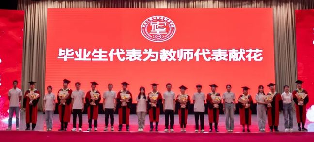 在悠扬的音乐声中,毕业生代表为教师代表献花,感恩彼此的相遇,感谢全体教师的辛勤付出和悉心培养。