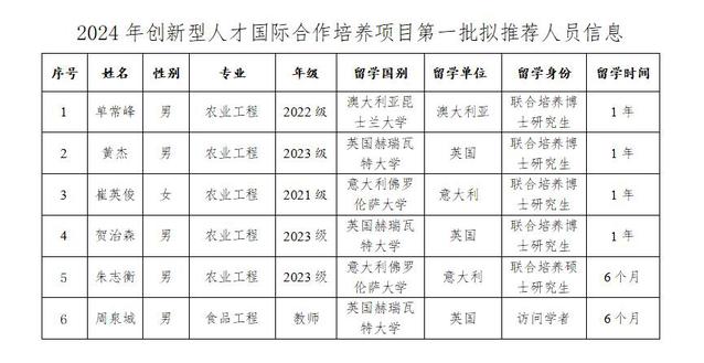 近日,国家留学基金管理委员会公布2024年创新型人才国际合作培养项目录取情况,公司推荐的6名师生全部获批资助,将分别作为访问学者、联合培养博士研究生、联合培养硕士研究生赴世界一流学府进行深造交流,开拓国际学术视野,助力所在学科人才培养、科学研究国际化。