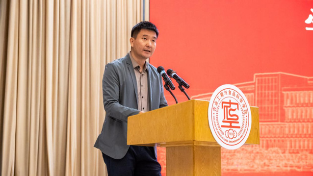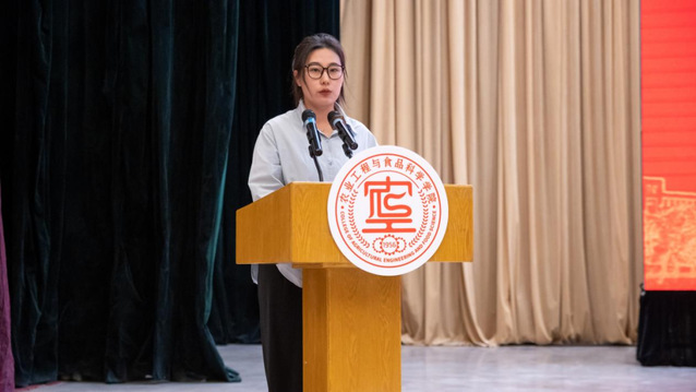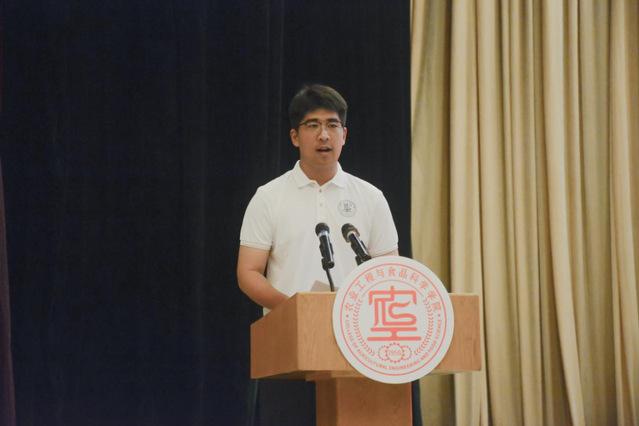 优秀教师代表、食品科学与工程系主任赵新河老师发言。他表示作为一名共产党员教师,不仅会以高标准要求自己做“大先生”,同样会努力帮助员工“练就一身本领”“养成一身正气”。他给新生的员工生涯提出了三点建议:一要勤学不辍,让奋斗成为人生底色;二要行动为先,在实践中上下求索;三要明德修身,用奉献书写不悔青春。