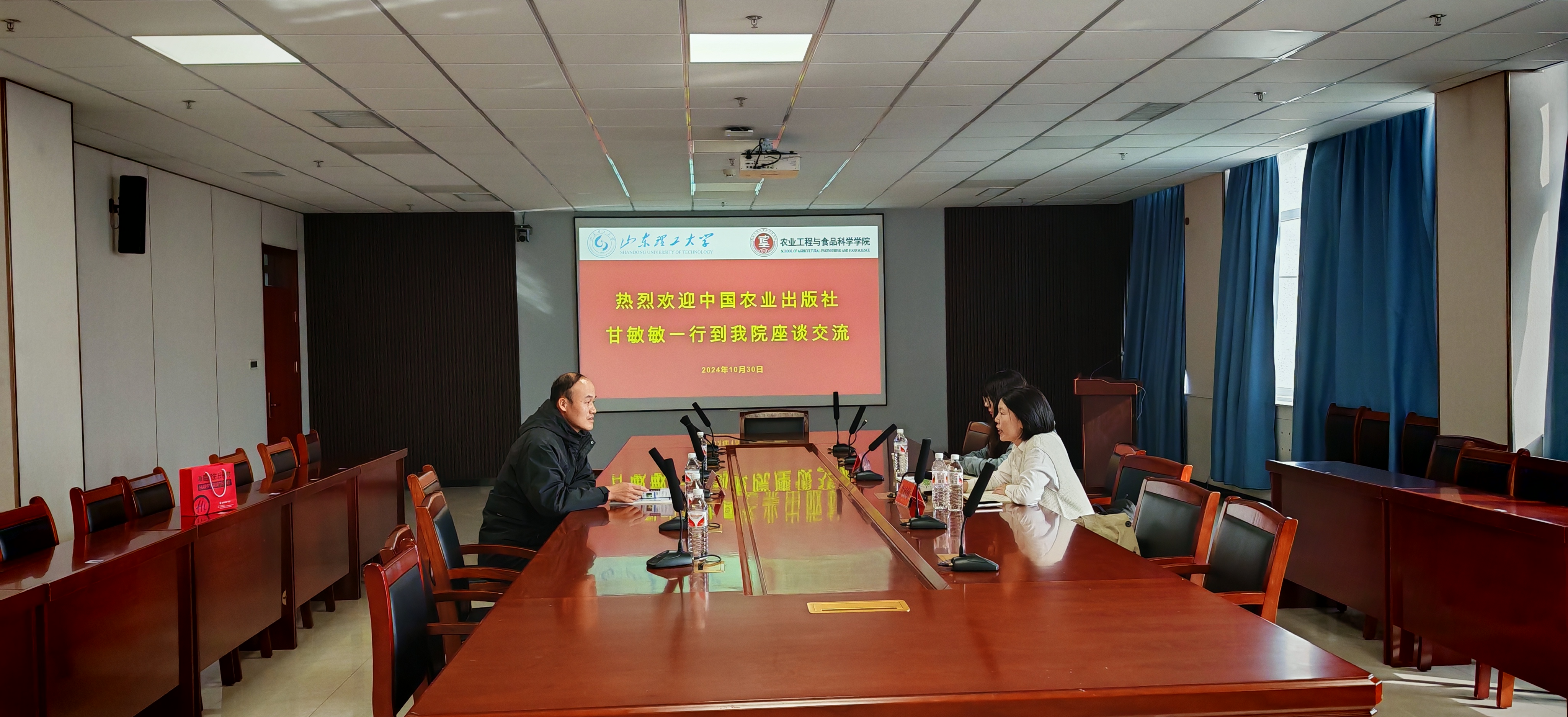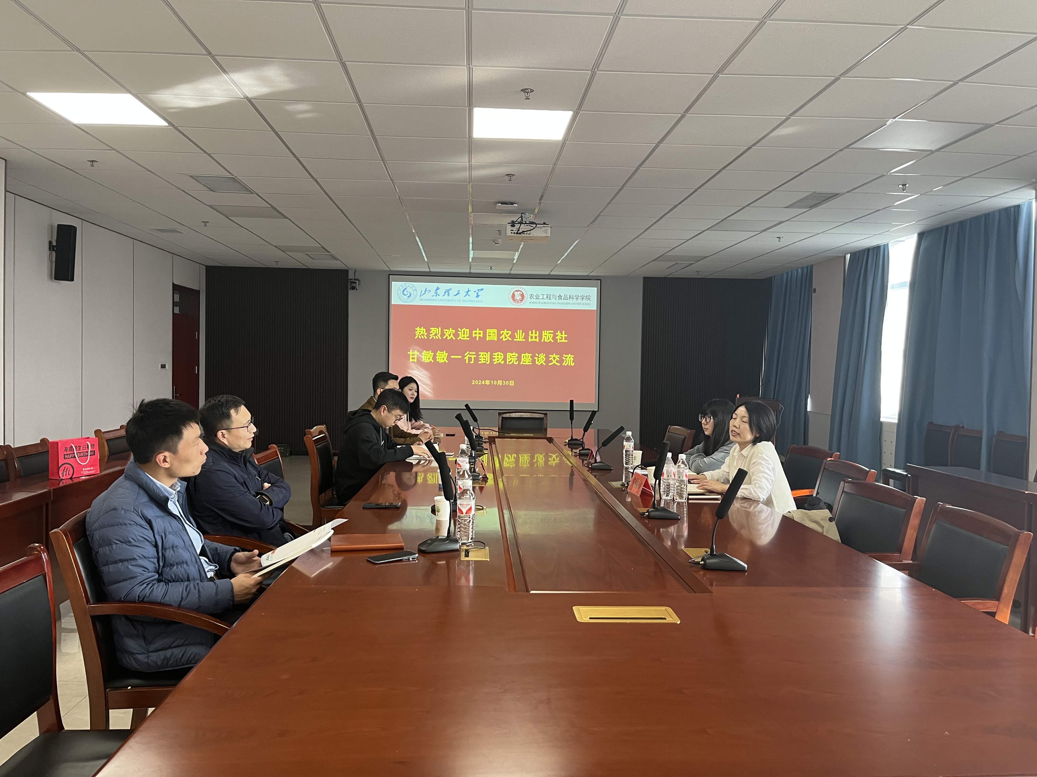 2024年10月30日下午,中国农业出版社编审甘敏敏、策划编辑张柳茵到公司进行交流调研。公司副经理张祥彩、教学工作办公室负责人、农机系主任及教师代表等参加了本次交流座谈。