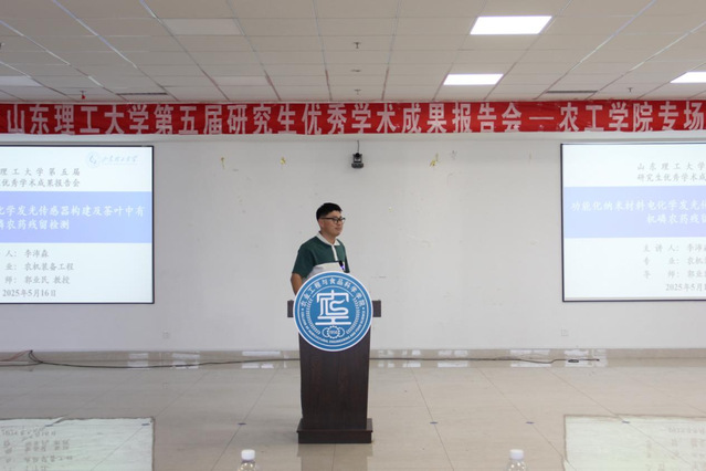 下午,硕士生张乐春、李沛森、纪小凤、王凯悦、延鲁婷分别以“基于无人机遥感的改进TransUNet和机器学习模型在棉花吐絮率分级中的应用”、“功能化纳米材料电化学发光传感器构建及茶叶中有机磷农药残留检测”、“无机碳源对己酸生物合成及微生物群落结构的调控作用研究”、“牛至精油微胶囊/大豆分离蛋白/羧甲基纤维素钠活性膜的制备及应用”和“基于金属纳米团簇的电化学发光适配体传感器用于食源性致病菌检测的研究”为题作了学术报告。