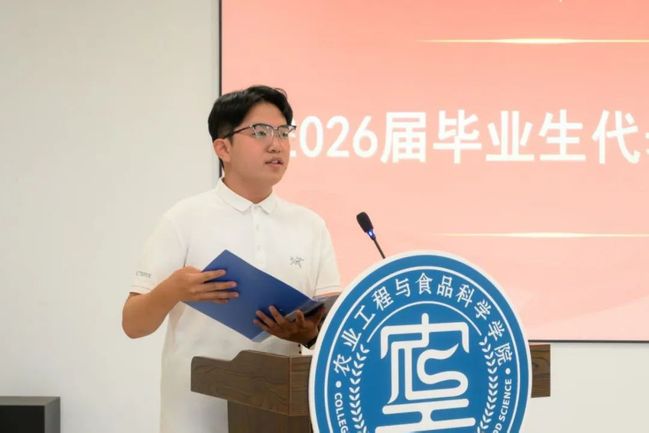 2026届本科毕业生代表李荣昊感谢2025届本科毕业生学长的经验分享。他呼吁2026届毕业生要强化专业基础、精炼求职简历、拓展择业视野,把握住即将到来的秋招机会,始终秉持坚韧不拔的意志与积极进取的心态迎接挑战。