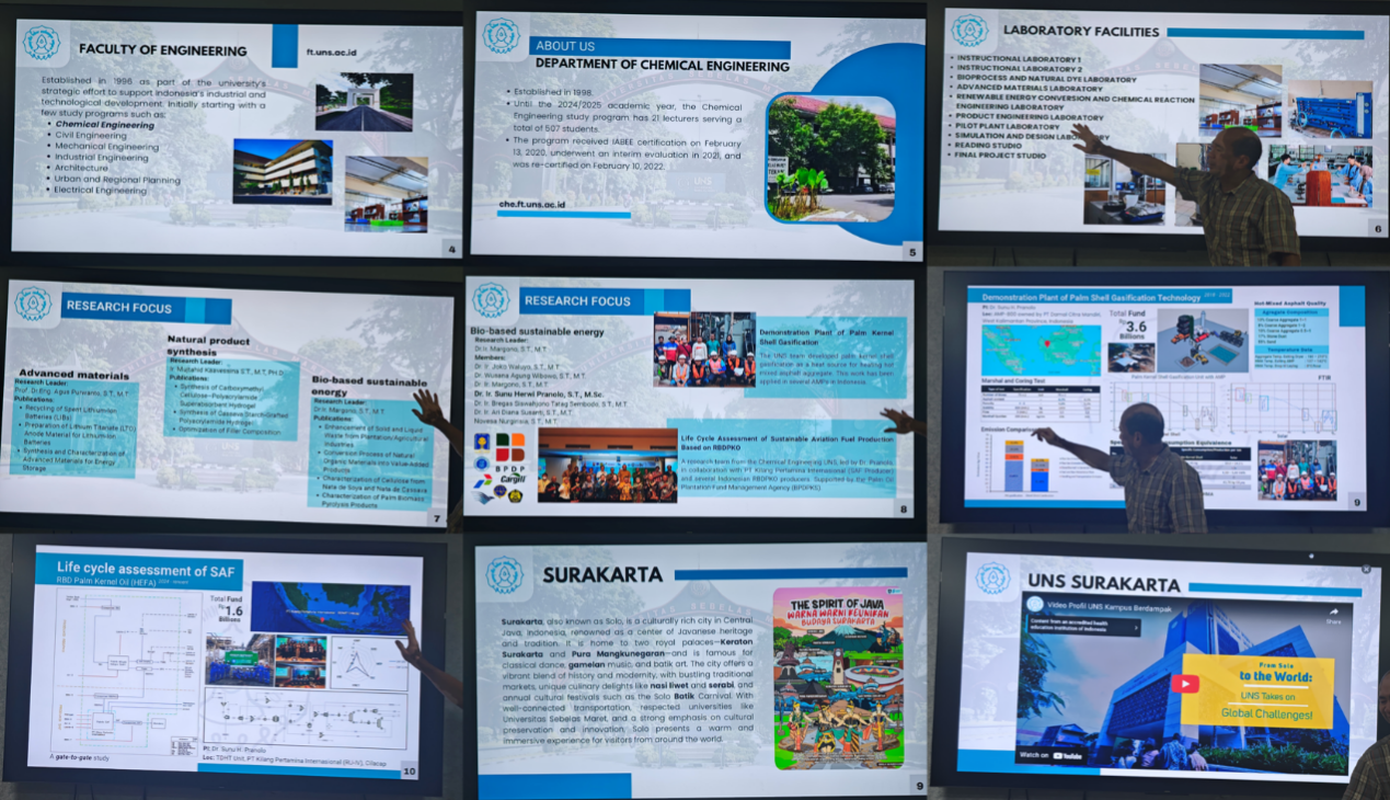 2025年8月7日至9日,公司能源系姚金刚课题组与印度尼西亚三一一大Universitas Sebelas Maret化学工程系Sunu H. Pranolo 教授团队开展了学术交流活动。交流主题涵盖生物质能源转化、绿色燃料制备等新能源与可再生能源领域,旨在推动双方在相关学科方向上的合作与进展。