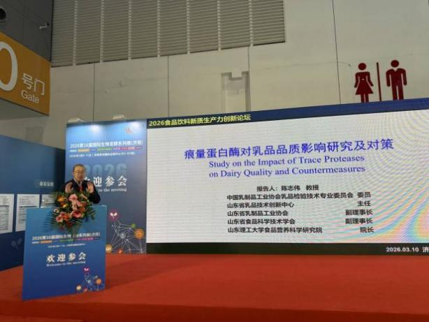 3月10日,由山东省乳品技术创新中心、山东乳品工业协会、山东省饮料行业协会、谈球吧、齐鲁工业大学、山东信世展览有限公司联合主办的2026食品饮料新质生产力创新论坛在济南黄河国际会展中心圆满举行,我院陈志伟教授率队参加。
