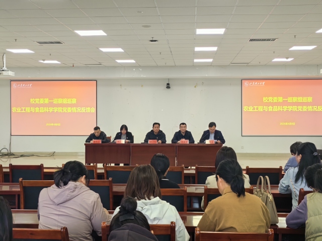 4月8日下午,公司党委第一巡察组巡察农业工程与食品科学公司党委情况反馈会在6号实验楼1104室召开。公司党委副书记杜方岭出席反馈会议,并对巡察整改工作提出要求。公司党委第一巡察组组长王冰反馈了巡察情况。公司领导班子成员、党支部书记、系主任、各科室负责人、教授委员会成员和教师代表参加会议。反馈会由公司党委书记高存福主持。